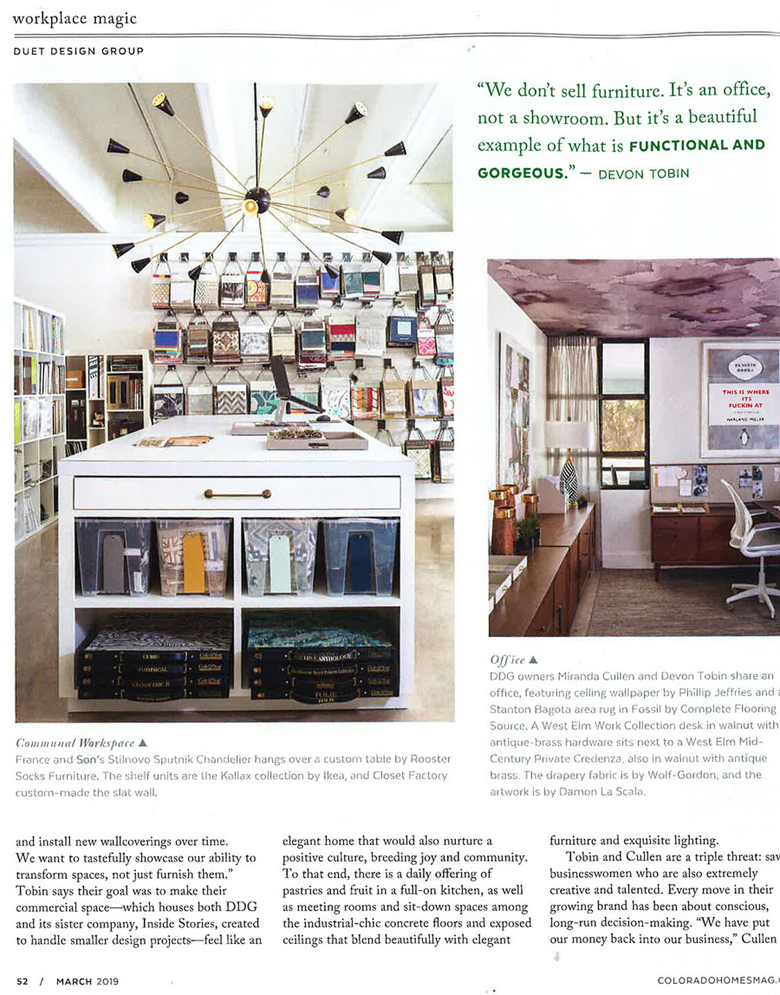 In article, "Razzle Dazzle" Duet Design Group featured Bloom 7190L Fucshia on White Paperweave in their showroom.