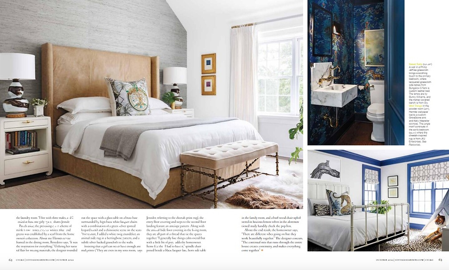In the article "Winning Combinations", interior designer featured Extra Fine Arrowroot 3841 Solitude in the bedroom of a clients home.  In the article "Breathing Room" interior designer Amy Zolin featured Vinyl Brushstroke Silk 7472 Iorn Work.