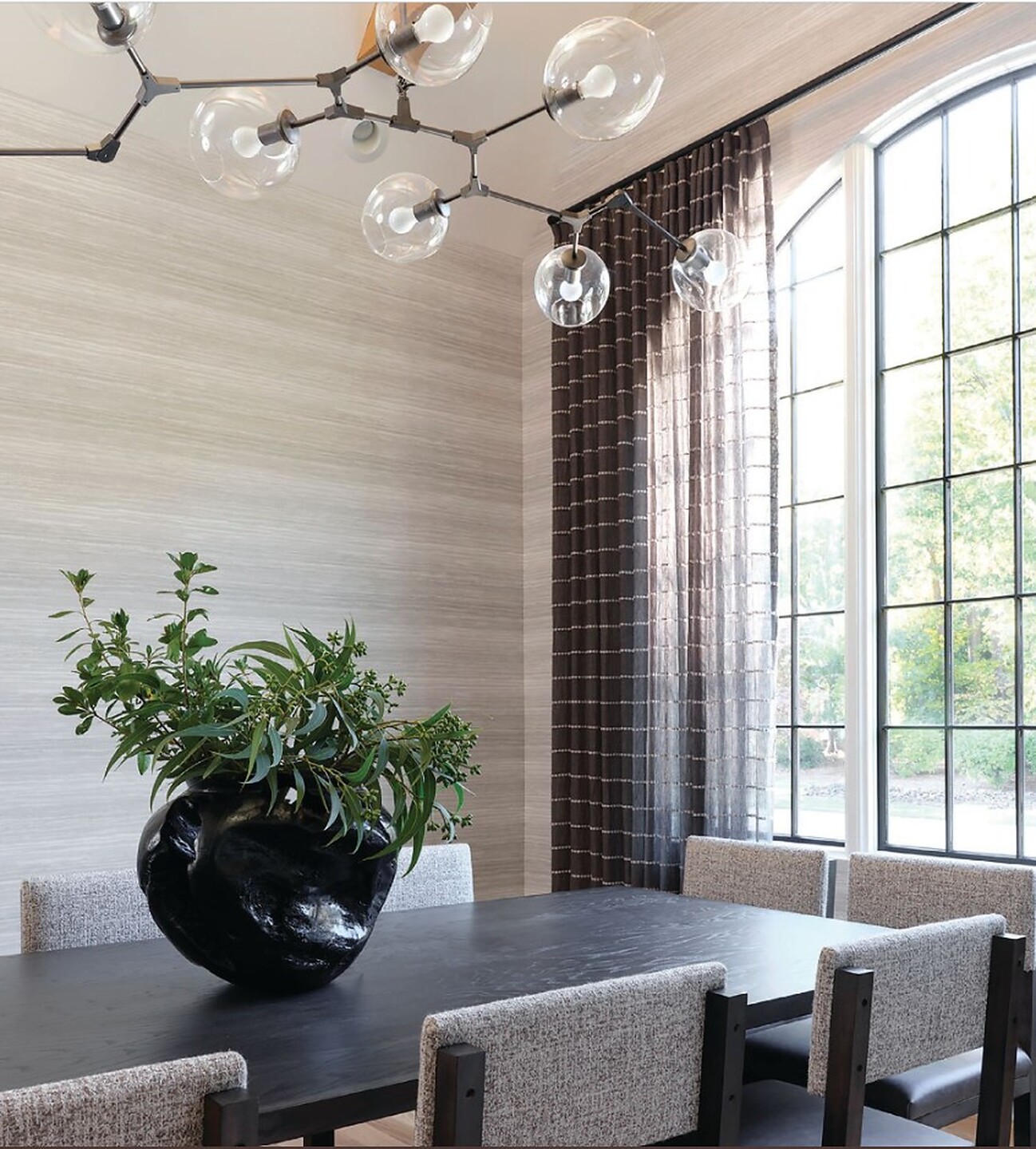In the article "Room to Grow" interior designer Emily Del Bello featured Vinyl Kimono Silk 7039 Oolong Tea in the dining room of a clients home.