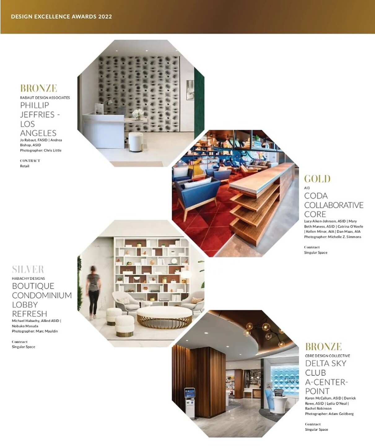 In the article "Design Excellence Awards" Phillip Jeffries Los Angeles showroom received Bronze.