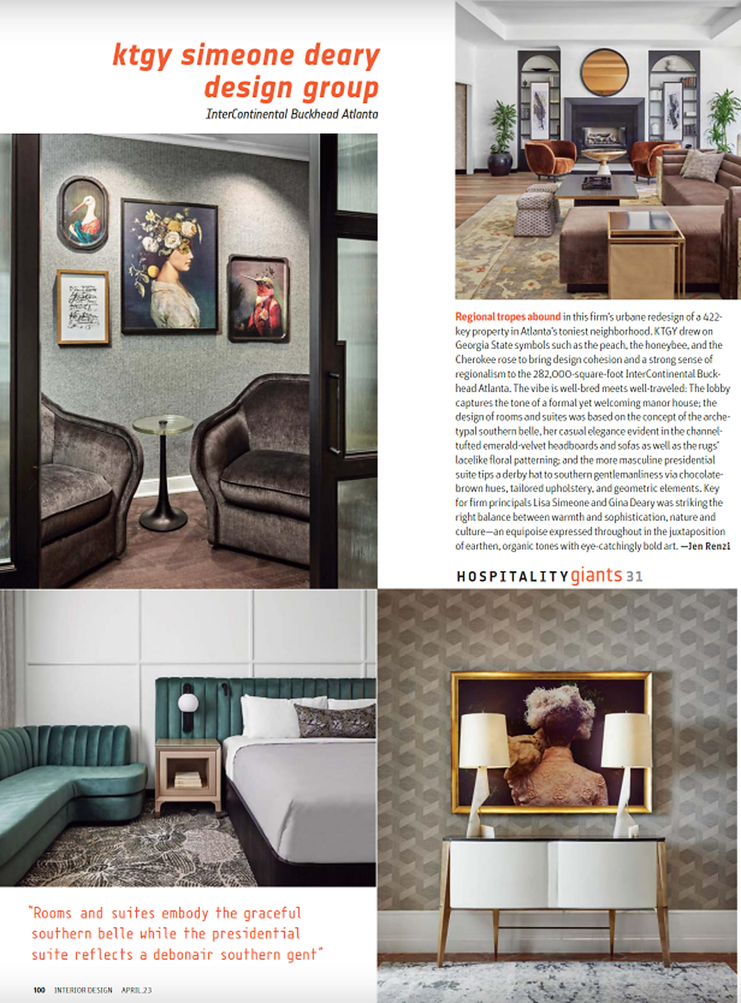 In article "Hospitality Giants," interior design firm KTGY Simeone Deary Design Group featured Vinyl Woven Sisal 8122 Dusty Gray in the Intercontinental Buckhead.