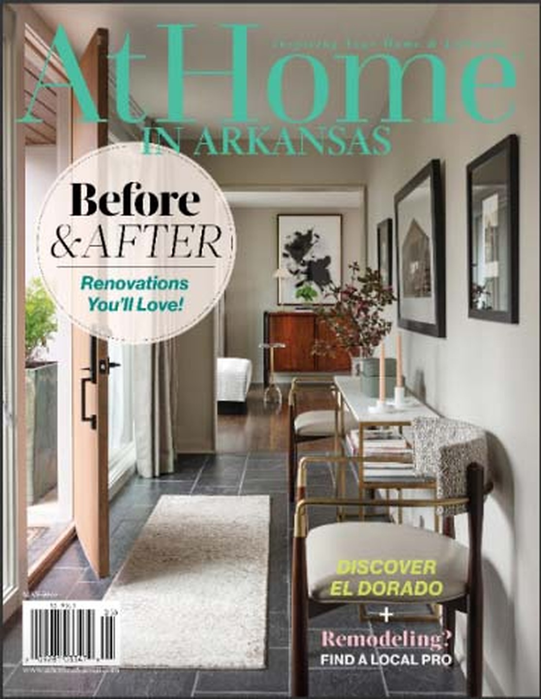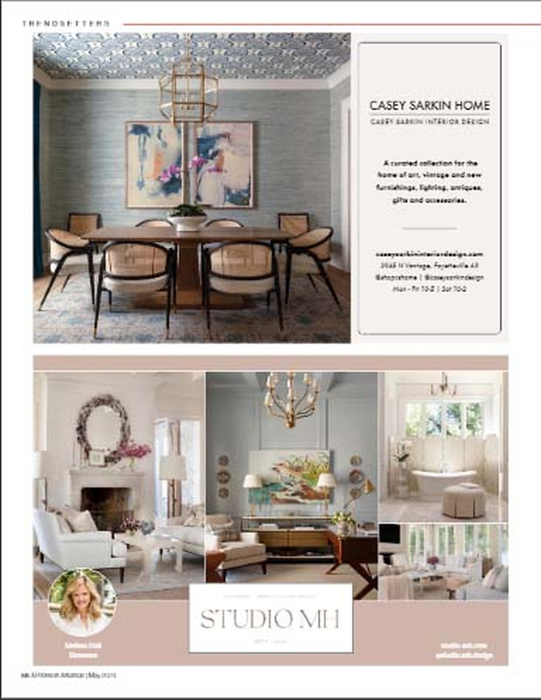 In article, "Trendsetters," interior designer Casey Sarkin featured Juicy Jute 4765 Moroccan Teal in the dining room of her Casey Sarkin Home advertisement.