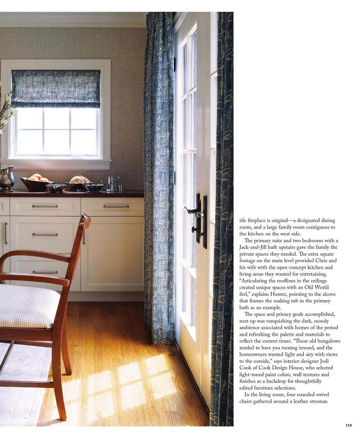 In article, "Minimalism With Maximalism Style," Cathers Home features Beyond 7202 Indigo Horizons in the main bedroom of a client's home, and in article, "Honoring the Past," Cook Design House features Seaside Linen 5559 Sticks and Stones in the dining room of a client's home.