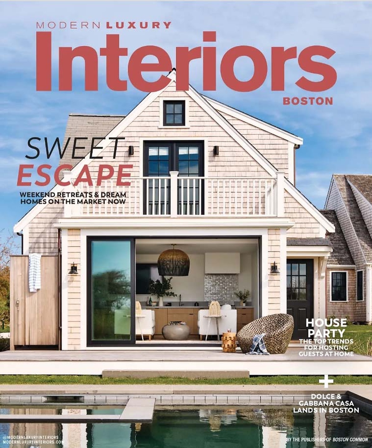 In article, "Easy Living," Kennerknecht Design Group features Manila Hemp 5234 Shadow in the living room of a client's Cape Cod vacation home.