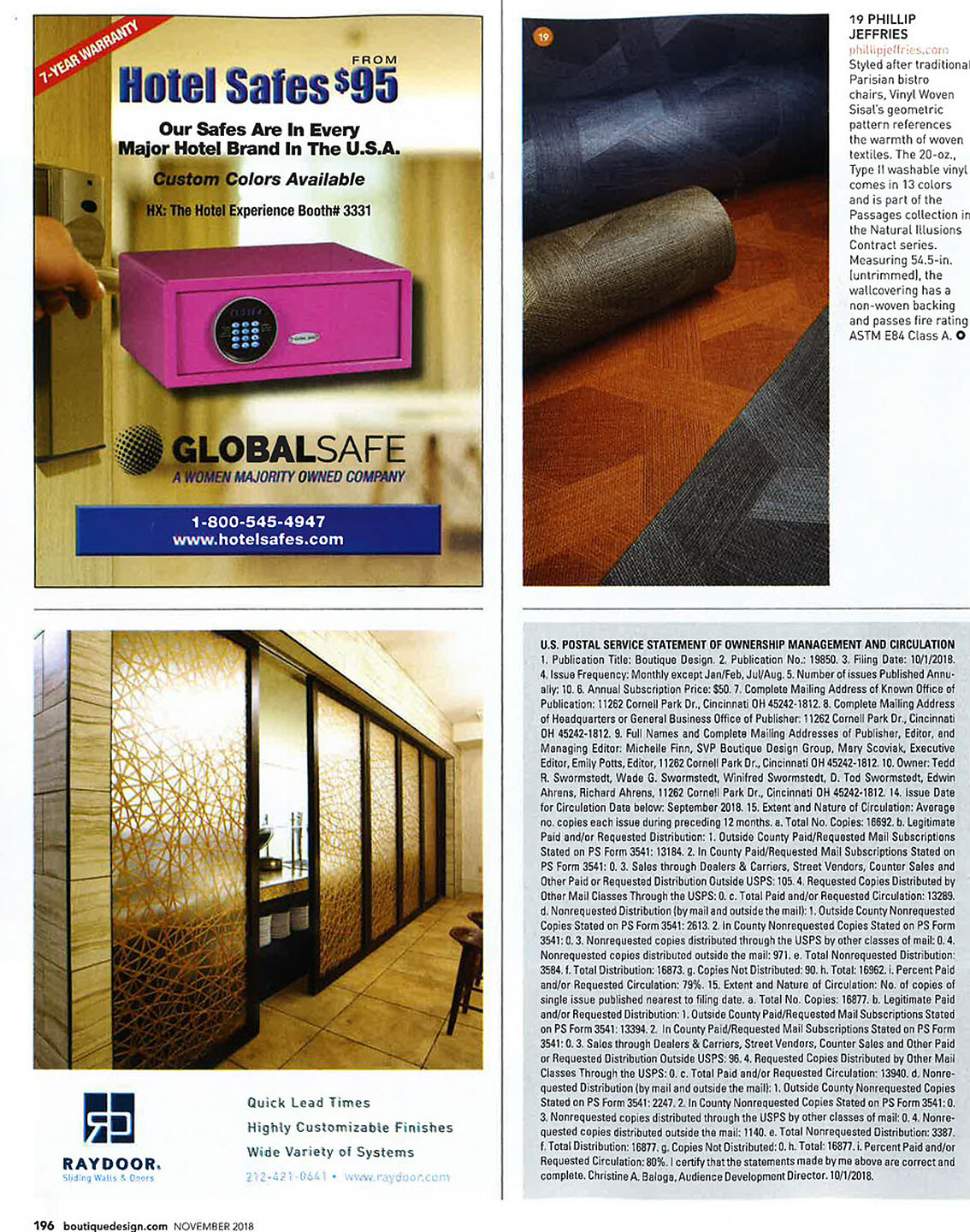 In article, "Product Showroom Wallcoverings," a product shot of Vinyl Woven Sisal is featured.