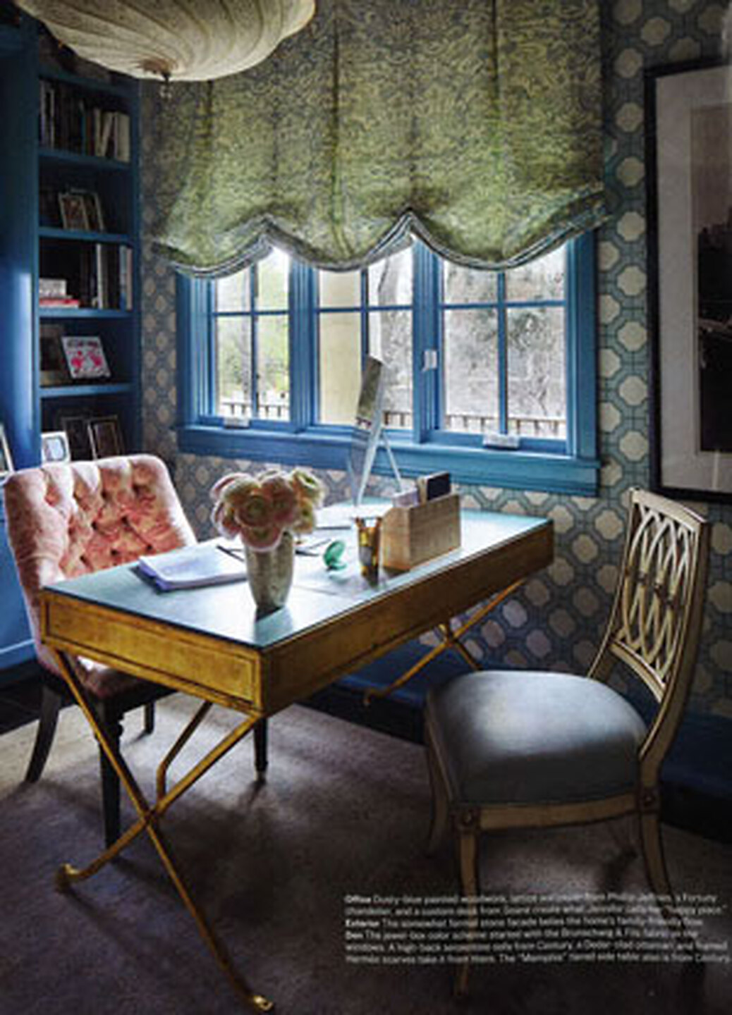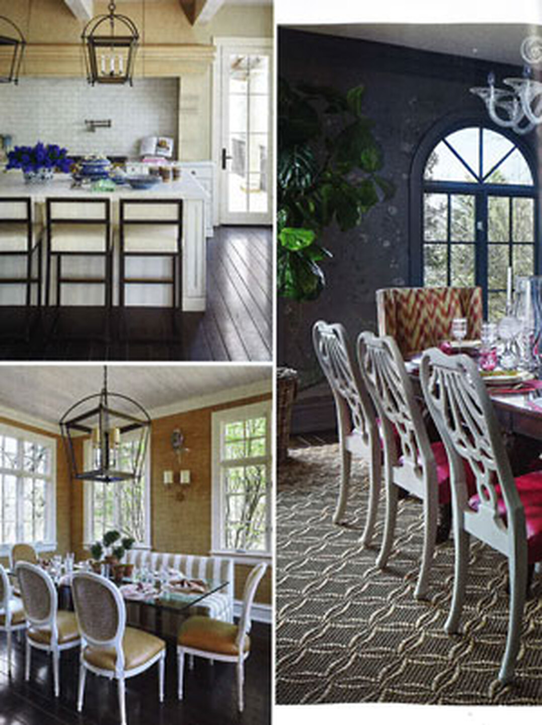 In article, "Design Osmosis," Charlotte Moss Designs featured African Raffia 1749FW Capri Natural in the kitchen of a client's home. In article, "Design Osmosis," Charlotte Moss Designs featured Imperial Gates 5192 Dove and Harbour Blue on White Manila Hemp in the office of a client's home.